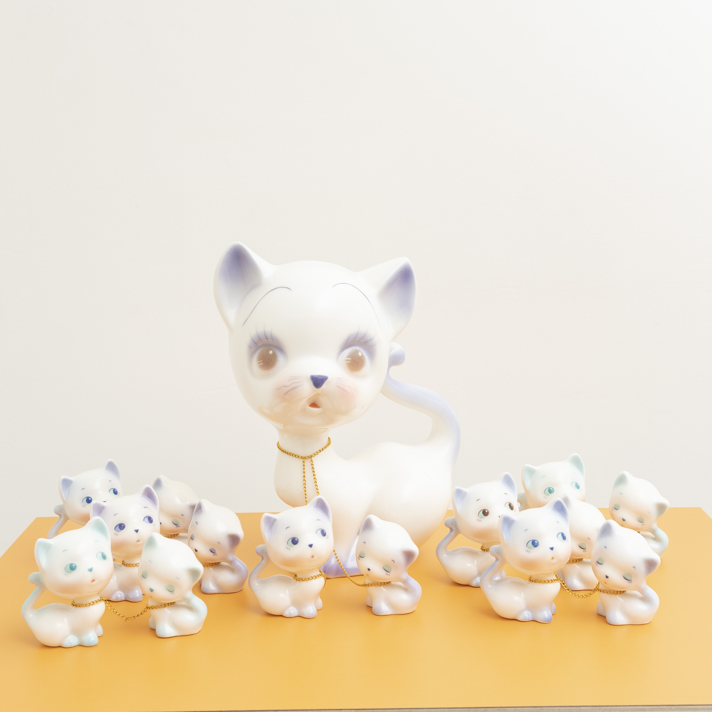人們將對美好、理想事物的追求,化作一件件瓷器象徵物,擺放於日常生活間,將目光落在這些物件上,彷彿就能更靠近理想生活,與其說它們是帶來好運的吉祥物,不如說是人們寄託情感與期待的所在。謝佳瑜長期以陶瓷動物藝品為創作核心,正是從這些看似微小、卻深植日常的物件出發,回望人們如何透過物質形塑對家庭、幸福與秩序的想像。
