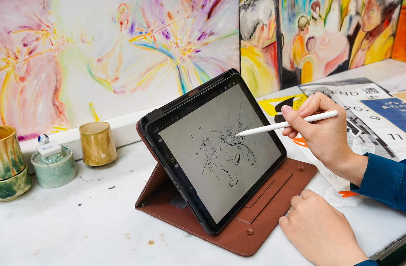 若要深入理解顏子耘的藝術深度,必須穿透視覺的表象,進入她那獨特的「觸摸型筆觸」。在她的創作邏輯裡,視覺往往是遲到的,「觸摸」才是最原始、最誠實的記憶。捨棄了理性的草稿與速寫本,她的畫筆轉化為手指的延伸,順著想像中對方的體溫、肌理與呼吸頻率,在畫布上緩緩遊走。