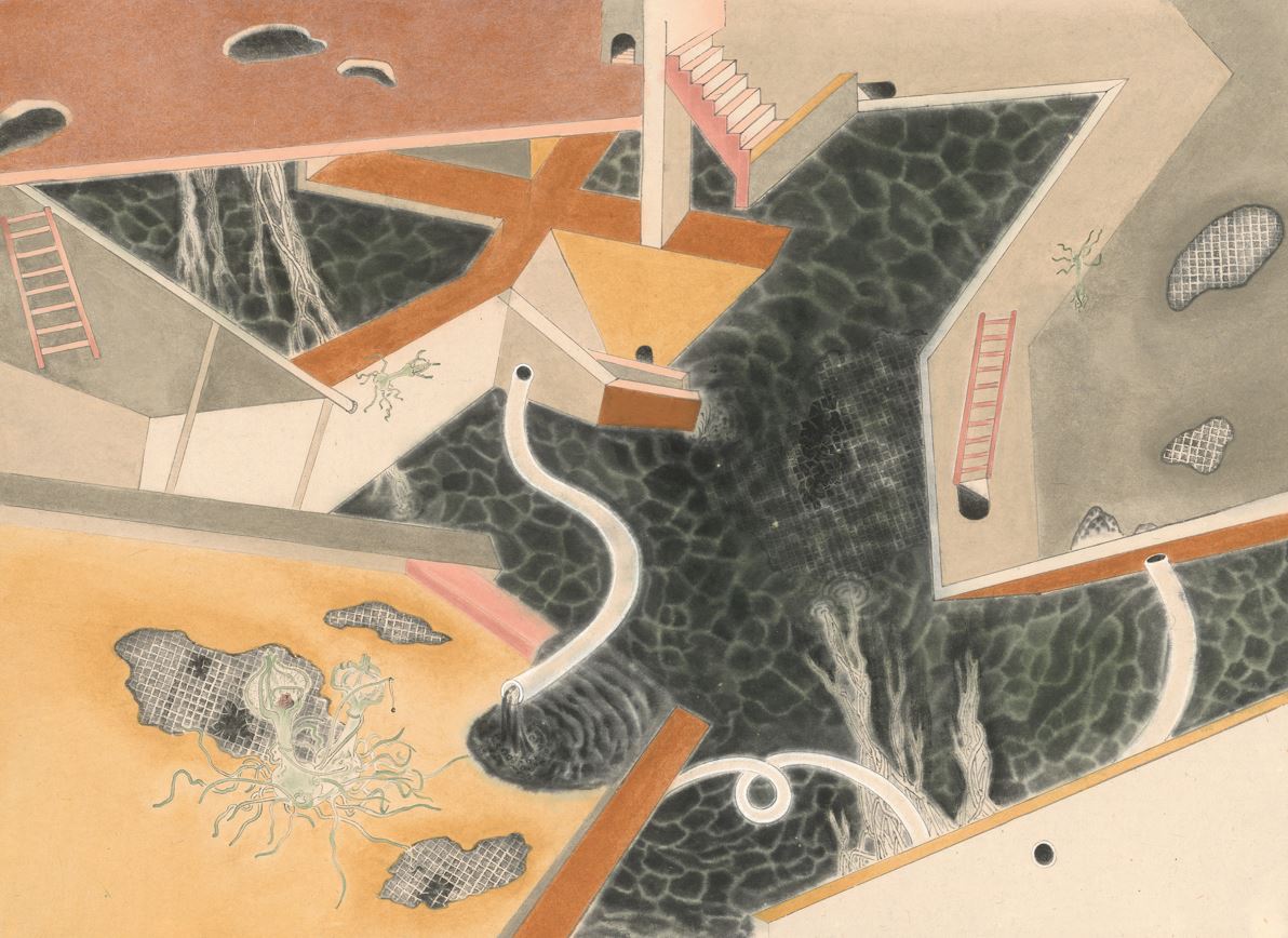 另外她也提到,自己的空間安排受到兩款遊戲啟發《樂克樂克》(LocoRoco)與《紀念碑谷》(Monument Valley)。前者揭示地圖的形式推進,後者則以錯視與不可能的建築結構創造出迷路與遲疑的體驗。這些「遊戲的空間邏輯」啟發她錯置建築線條以及超越常規的構圖視角,讓觀看者如同遊戲玩家般,在紙上的迷宮裡探索,她笑說:「我喜歡那種不知道自己在哪裡的感覺,迷路有時比找到出口還真實。」