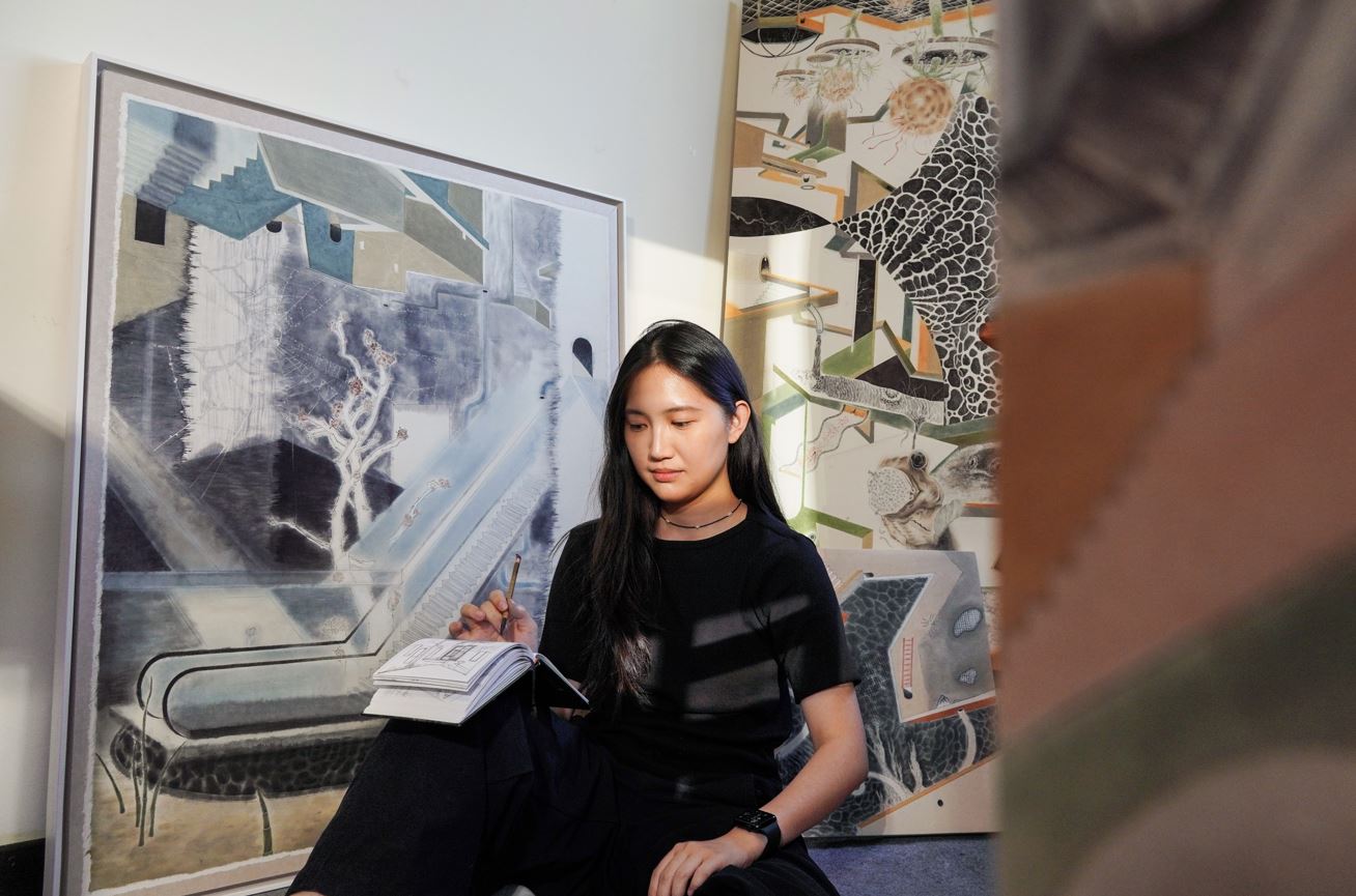 1999年生於新竹的陳薇如,現就讀於國立臺北藝術大學美術創作碩士班,主修水墨創作。她的藝術養分多來自日常觀察與情緒經驗,她的創作以探尋「心理空間」與「情緒棲居」之間的關係為核心,試圖在現實與內在之間,描繪情感如何於空間中浮現與停留。
