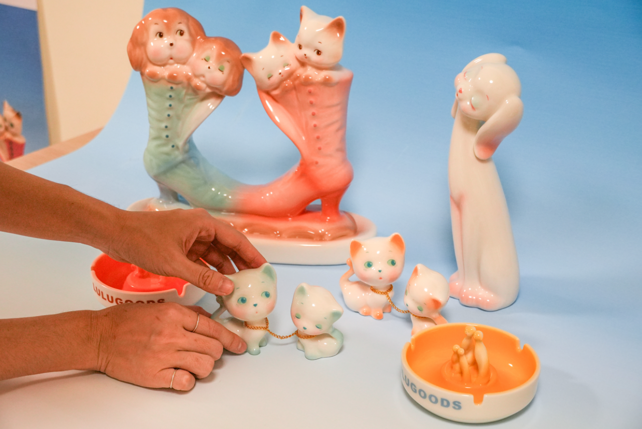 身為創作者,同時也是觀察者與收藏家的謝佳瑜,對陶瓷的喜愛,顯現在他的工作室中,那些散落於各個空間的動物瓷器與家具擺飾,彷彿讓時間短暫倒轉,使人置身於六、七○年代的氛圍下,或許正因未曾親身經歷,那個年代對他而言既陌生又迷人,也成為持續牽引創作的線索。在一次廢棄陶瓷工廠的田野調查中,他意外在舊資料裡發現關於該工廠過往盛況的影像紀錄,畫面中繁忙的生產景象,與現場荒廢的樣貌形成強烈對比,這份落差促使他重新思考產業的興衰、社會的轉變,以及意識形態如何在時間裡重塑,為創作帶來更深層的切入角度。